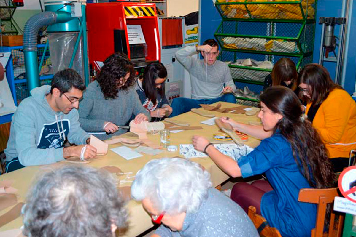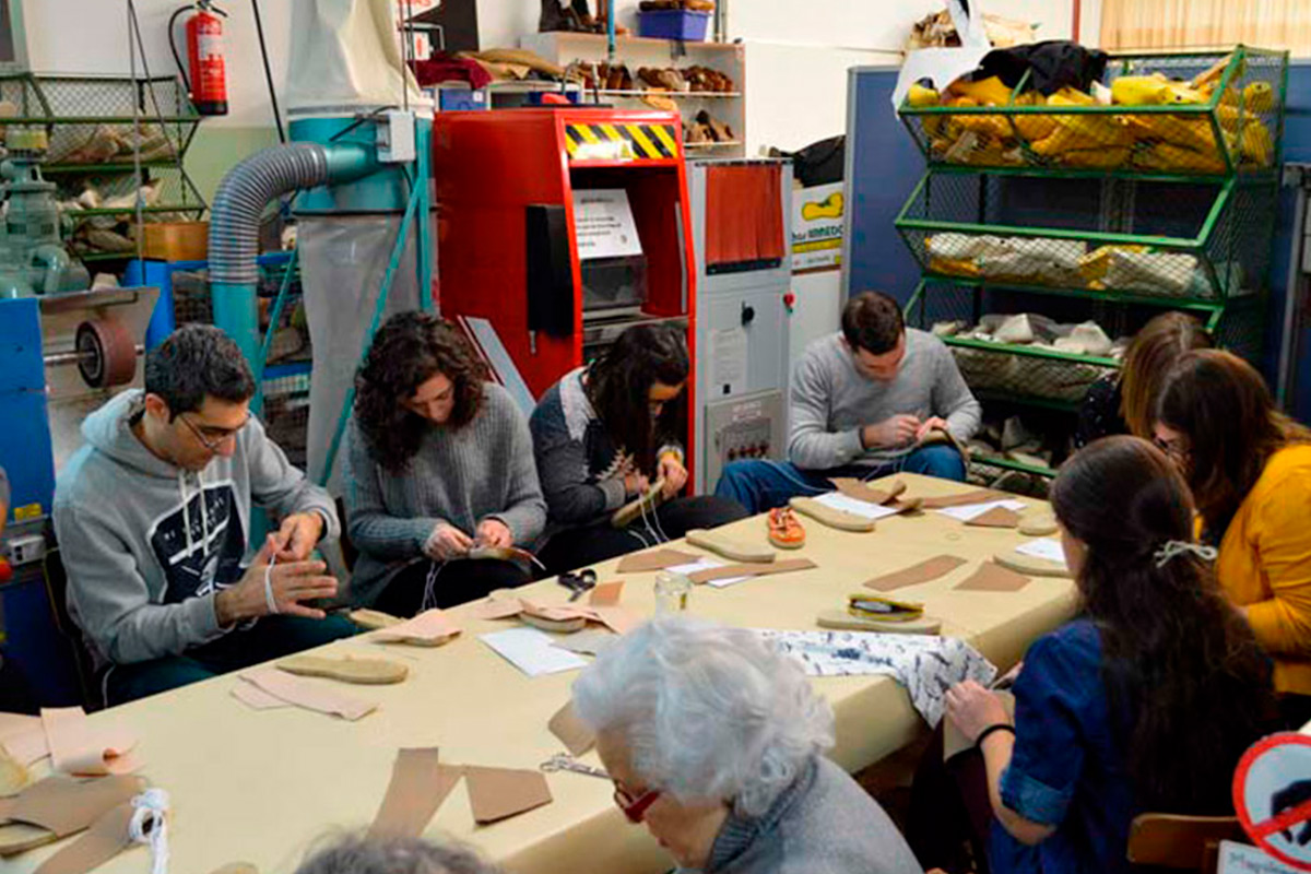 Taller de cosido de alpargatas de yute. Asociación de alpargateros de Cervera.